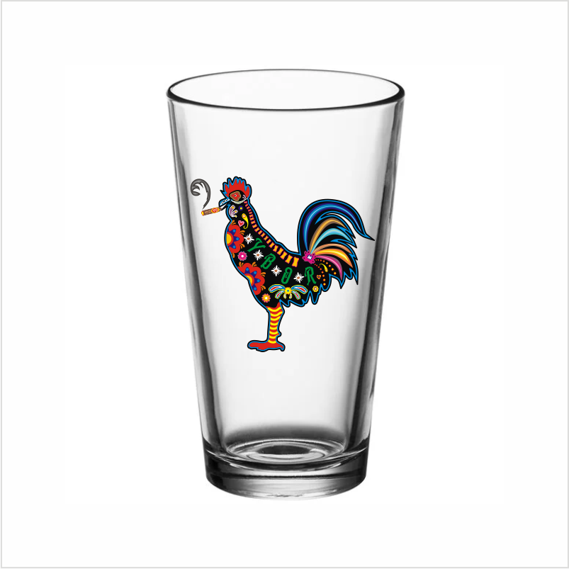 Raise a glass in Ybor style with this 16 oz pint glass featuring our etched Smokin’ Rooster, Sugar Skull Style Smokin' Rooster and our Cuban Folk Art inspired Smokin' Rooster. The design is crisp, permanent and the etched glass is dishwasher-safe, giving the glass a classic look with a classic Ybor twist. Perfect for beer, cocktails or your favorite cold drink, this sturdy pint is made for everyday use — from backyard hangs to Sunday Funday. A must-have for any Smokin’ Rooster fan and a great gift for anyone who loves a little Tampa flair in their glassware.